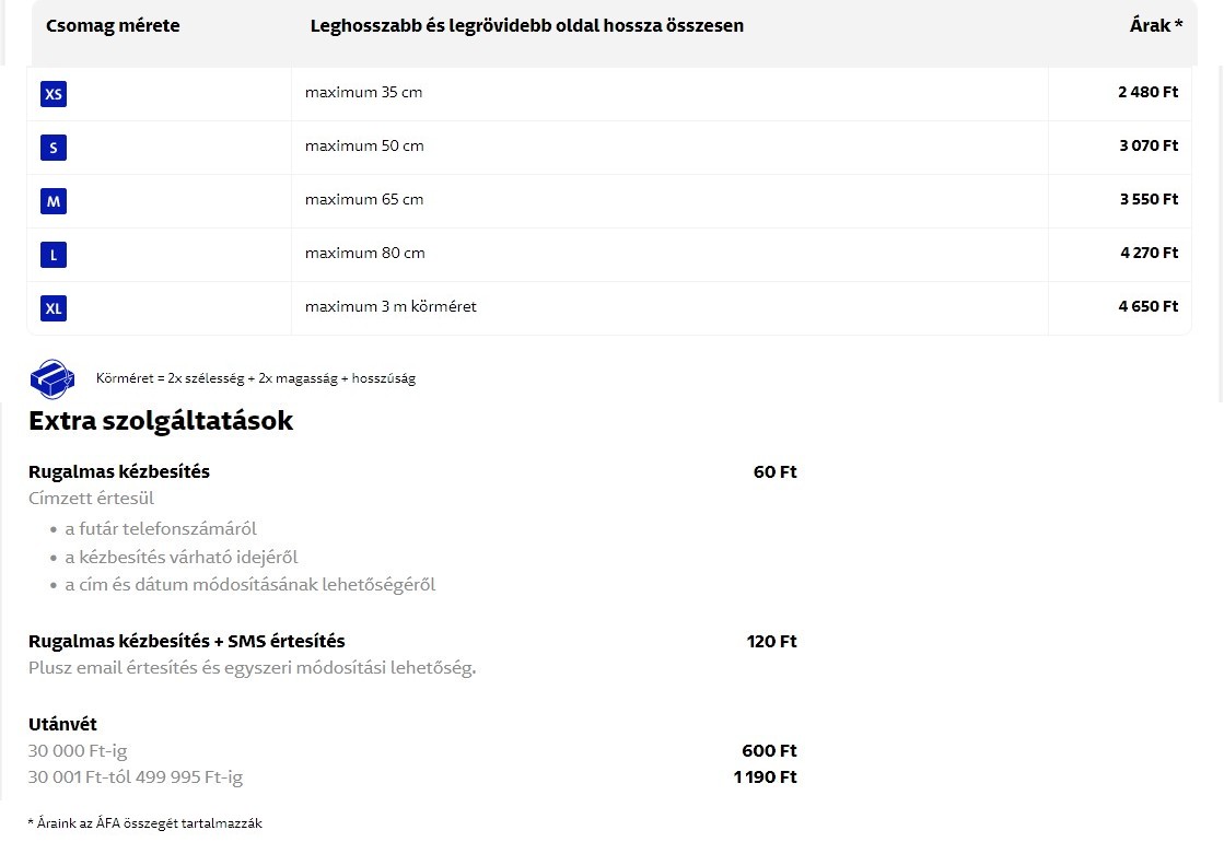 Utánvétellel 45.000,- Ft-ig (max. hossz 60 cm); csomagonként: